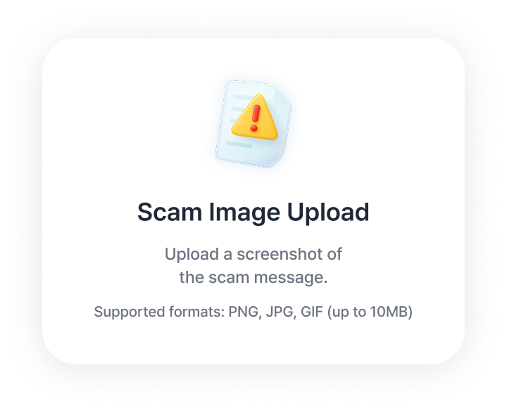 Capture suspicious messages or emails and upload them to the app. Scam information is automatically extracted from the image.